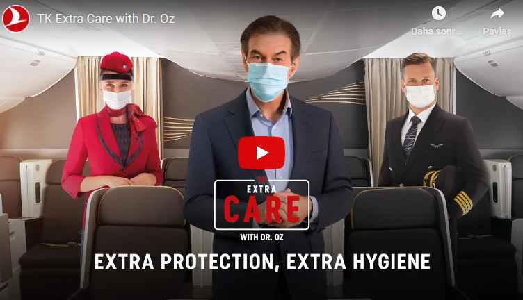 Türk Hava Yolları’nın yeni uygulaması olan ve ünlü  cerrah Dr. Mehmet Öz’ün rol aldığı “Dr. Öz ile TK Extra Care ”  güvenli seyahat programı tanıtım videosu yayınlandı. THY’nin internet sitesinden yayınlanan videoda koronavirüs salgını nedeniyle uçuşlarda alınması gereken tedbirler yer alıyor..